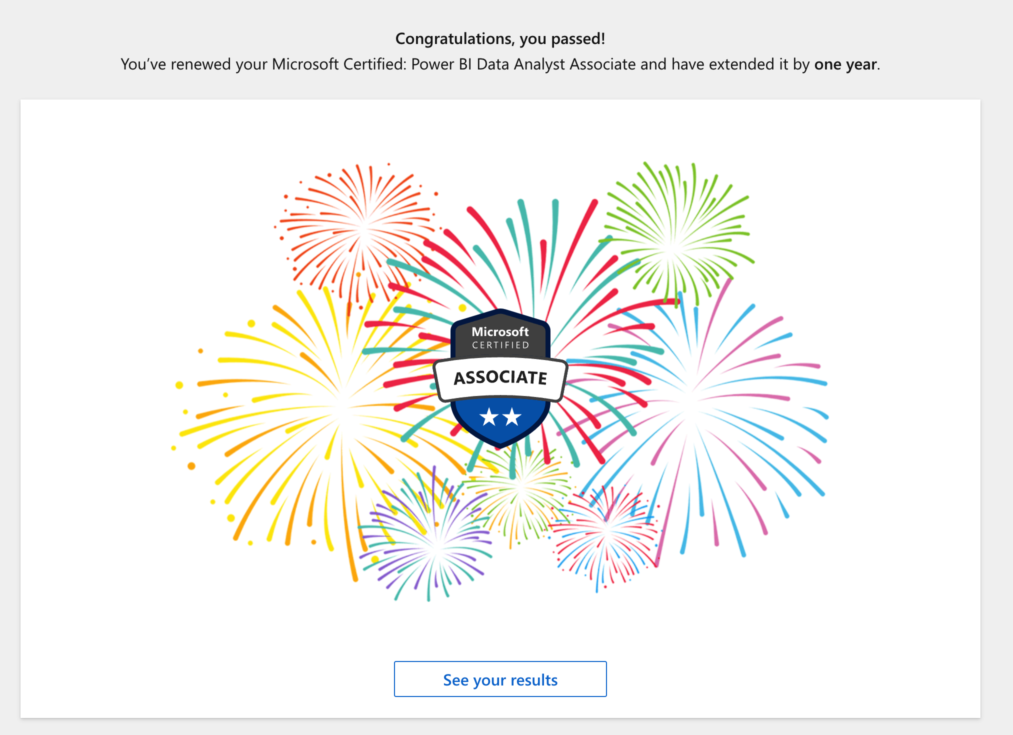 I work with Power BI on a daily basis, so I didn’t feel like I needed any extra preparation. However, for those who are not as familiar with Power BI, I recommend going through the “Prepare for the renewal assessment” course on Microsoft Learn. It consists of 7 modules that will help refresh your knowledge and prepare you for the renewal assessment.