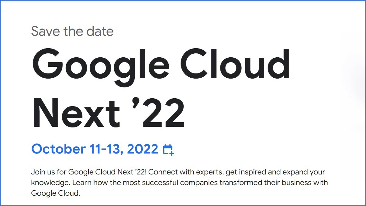 Google Cloud Next ‘22 is a part of digital Google Cloud Summit series. Register for these events to explore Google Cloud technology applications in various industries and dive into our latest digital innovations.