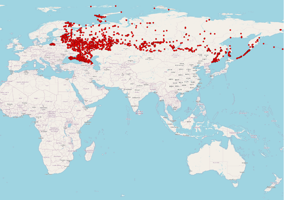 Visualization of 9,252 military sites across russia and the temporarily