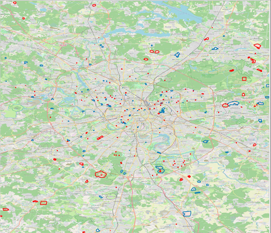 Deleted after 01/01/2022 (blue) and existing (red) geographical polygons