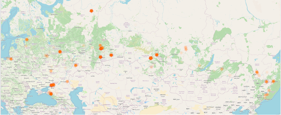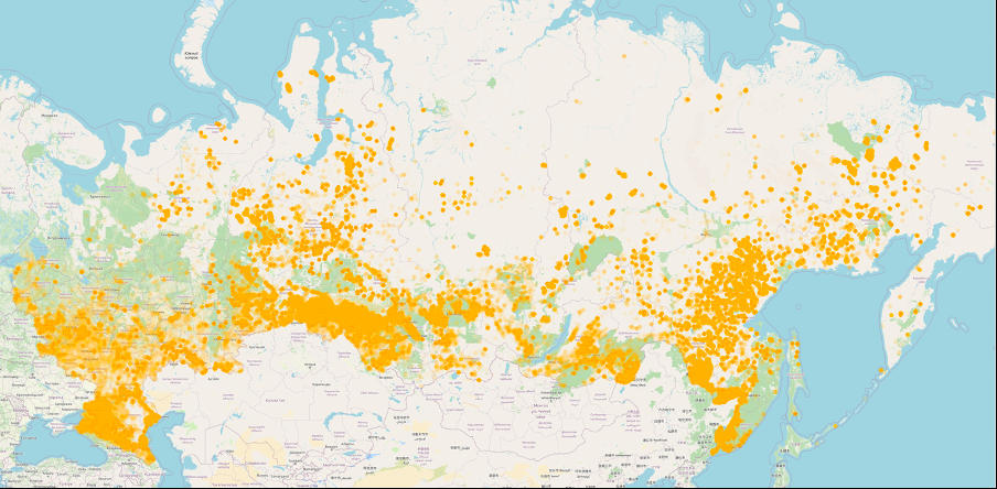 Visualization of fires in russia since January 1, 2022 (1,711,475 fires)
