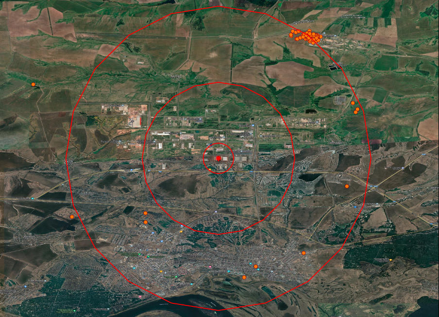 Now, let's attempt to solve the task of finding nearest neighbors using PostgreSQL. Using our datasets, we will try to identify ten fires that occurred near the factory in russia, where Iranian Shahed drones are manufactured. For more detailed information about the plant, you can refer to the research conducted by the Molfar team. The factory is located in the special economic zone Alabuga in Tatarstan, where previously cat food and automotive glass were produced, and mushrooms were grown. However, after sanctions against Russia, its priorities shifted, and now it plays a key role in russia's plans for drone production.