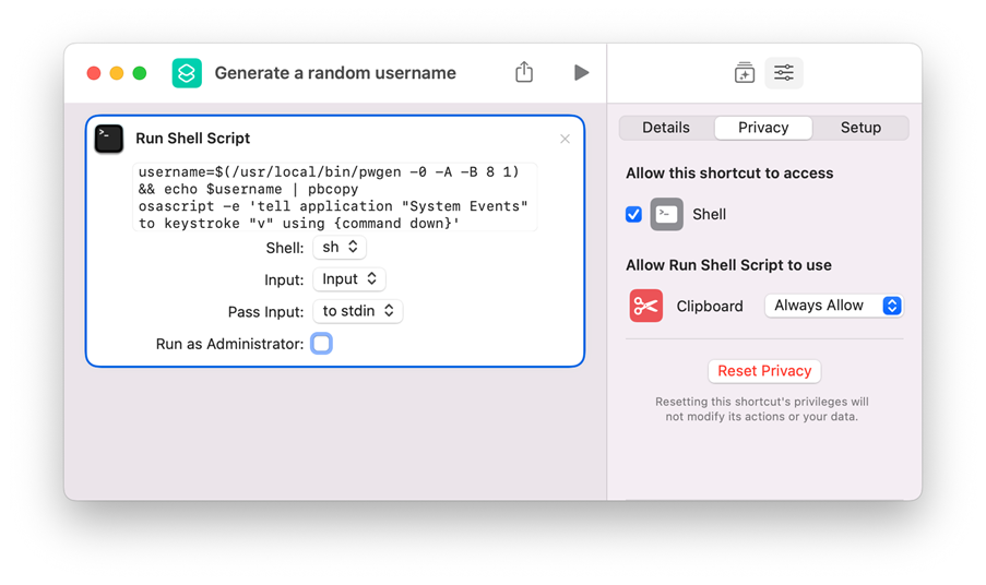 - Now you have two new shortcuts in the Shortcuts app, one for generating a random password and one for generating a random username. But in order to trigger them quickly, you can add global keyboard shortcuts for them.